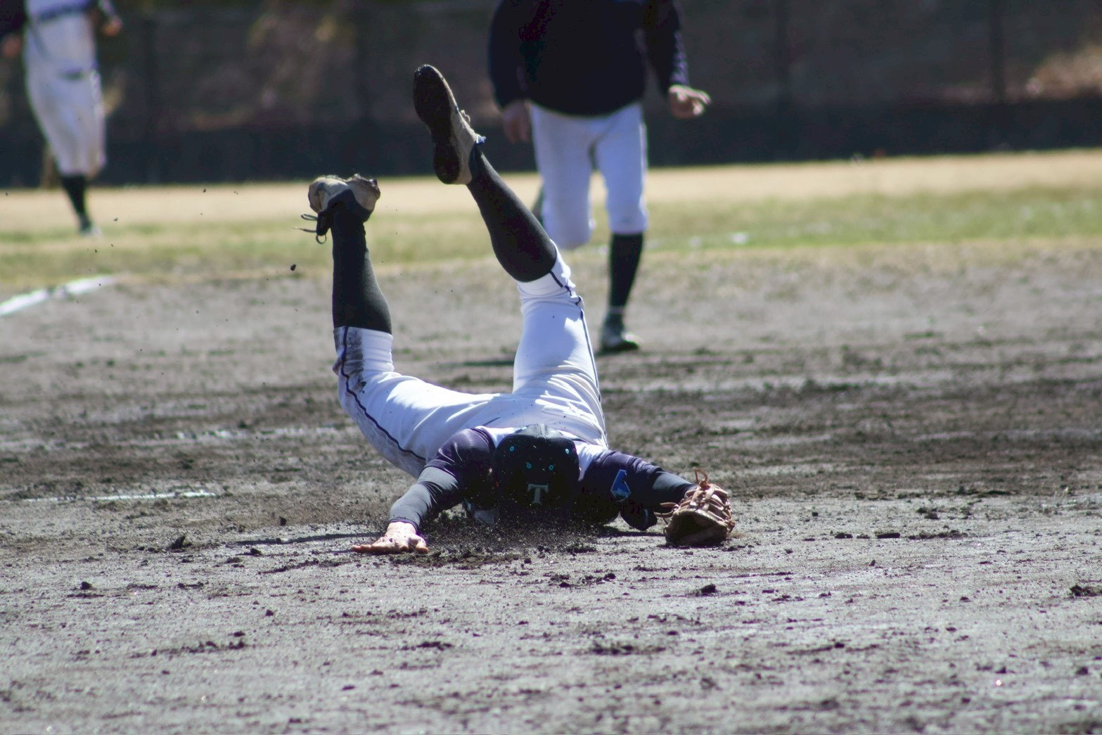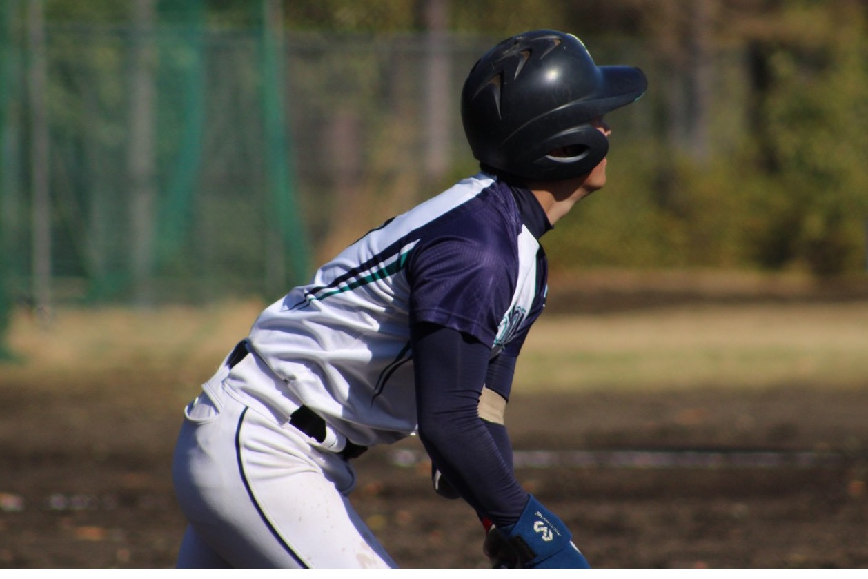 関口(人文社会・新3年)がレフト前ヒットで出塁すると、山田(理・新3年)のライトオーバーのスリーベースヒットで同点とします。