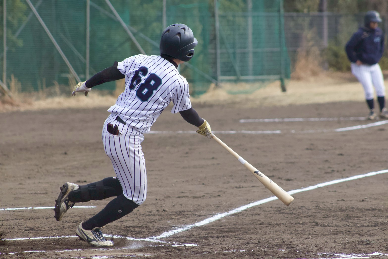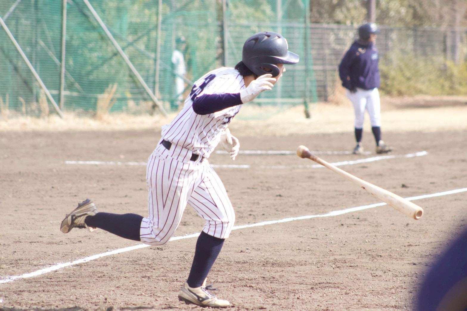 先頭打者の田蔵(法・新2年)が四球で出塁し盗塁を決めます。