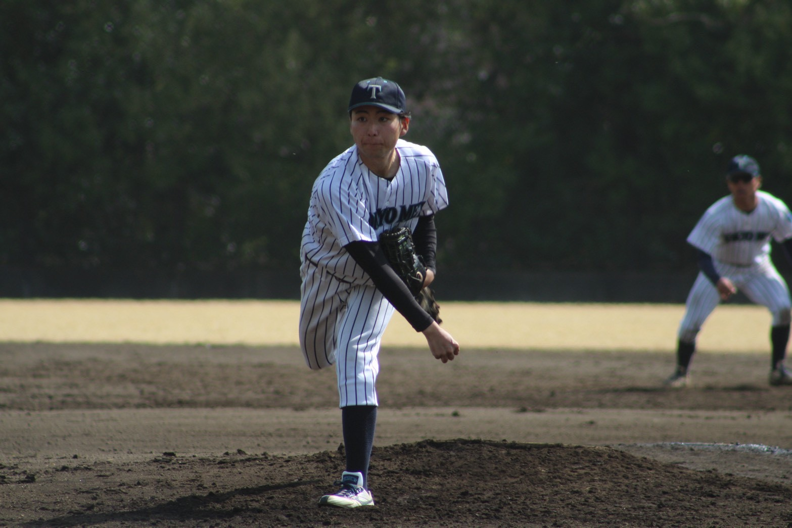 この回から早坂(経済経営・新2年)がマウンドに上がります。