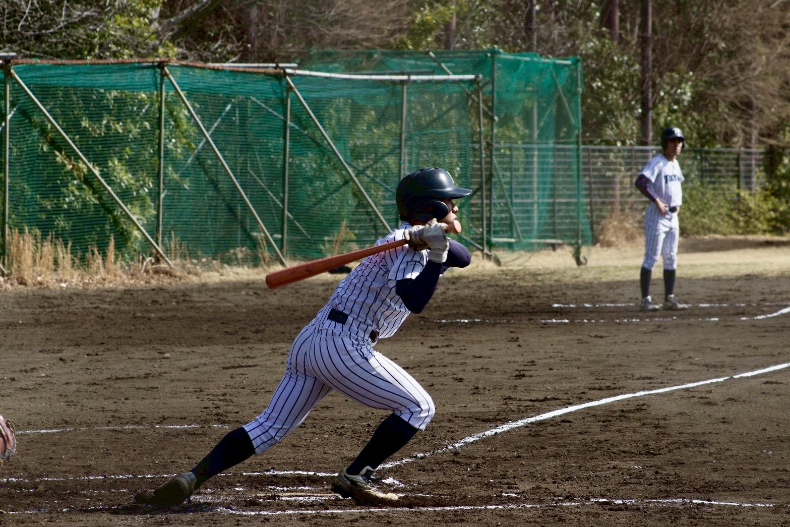 6回表からファーストの守備についた山田(理・新3年)が四球で出塁し、盗塁を決めます。